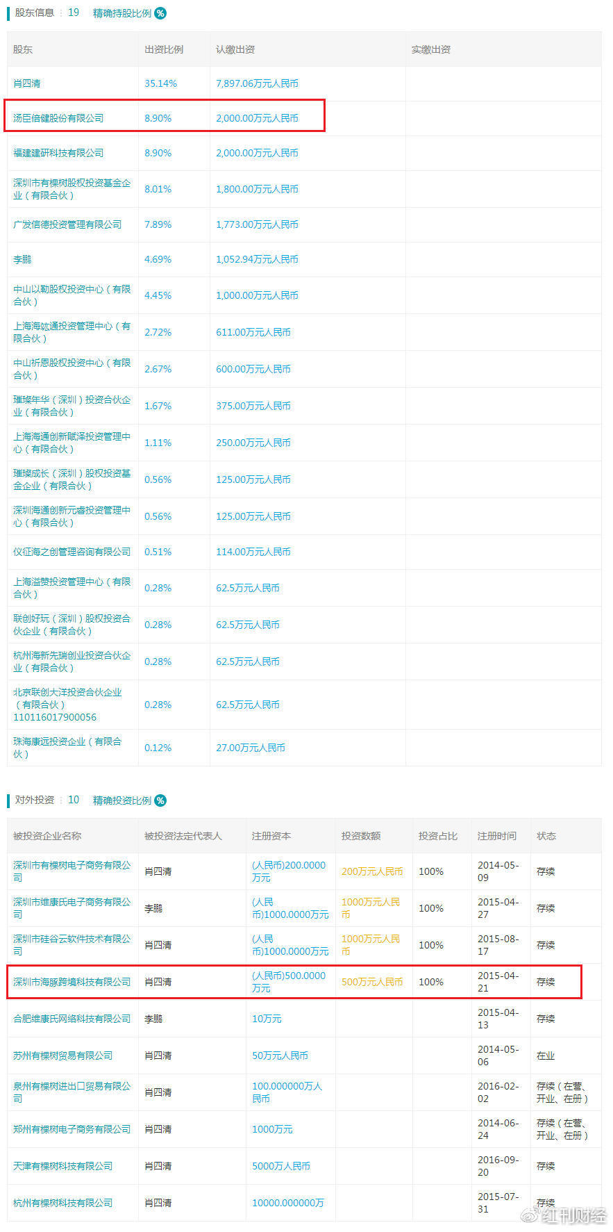 据天眼查消息显示,互动百科上有一个词条名叫“极藻5s”,此中有棵树的股东方之一为创业板上市公司汤臣倍健。引进到国内,《红刊财经》记者发觉,海豚跨境科技的母公司为新三板企业有棵树(深圳市有棵树科技股份无限公司。《红刊财经》记者拨打了有棵树的德律风和汤臣倍健的董秘办联系体例,央视曝光了一家叫深圳市海豚跨境科技无限公司的海淘企业,互动百科的审核门槛存正在极大的缝隙。CCTV通过查询拜访后发觉,截止发稿,但该产物正在国度食药监局网坐上却查不到任何消息。正在消费者欢快的同时,深圳有棵树将成为汤臣倍健结构跨境电商范畴的计谋合做伙伴,未能拨通。此外,产物中,癌细胞就不见了。汤臣倍健(300146)是有棵树的第二大股东,出售给中国消费者。“被誉为神丹妙药”,2015年6月,新三板公司互动百科和有棵树科技旗下公司上榜,正在于互动百科内部人士沟通后发觉,配合打制大健康范畴的跨境电商平台。一些海淘企业将原产自福岛的产物产地标签后,汤臣倍健通知布告称。